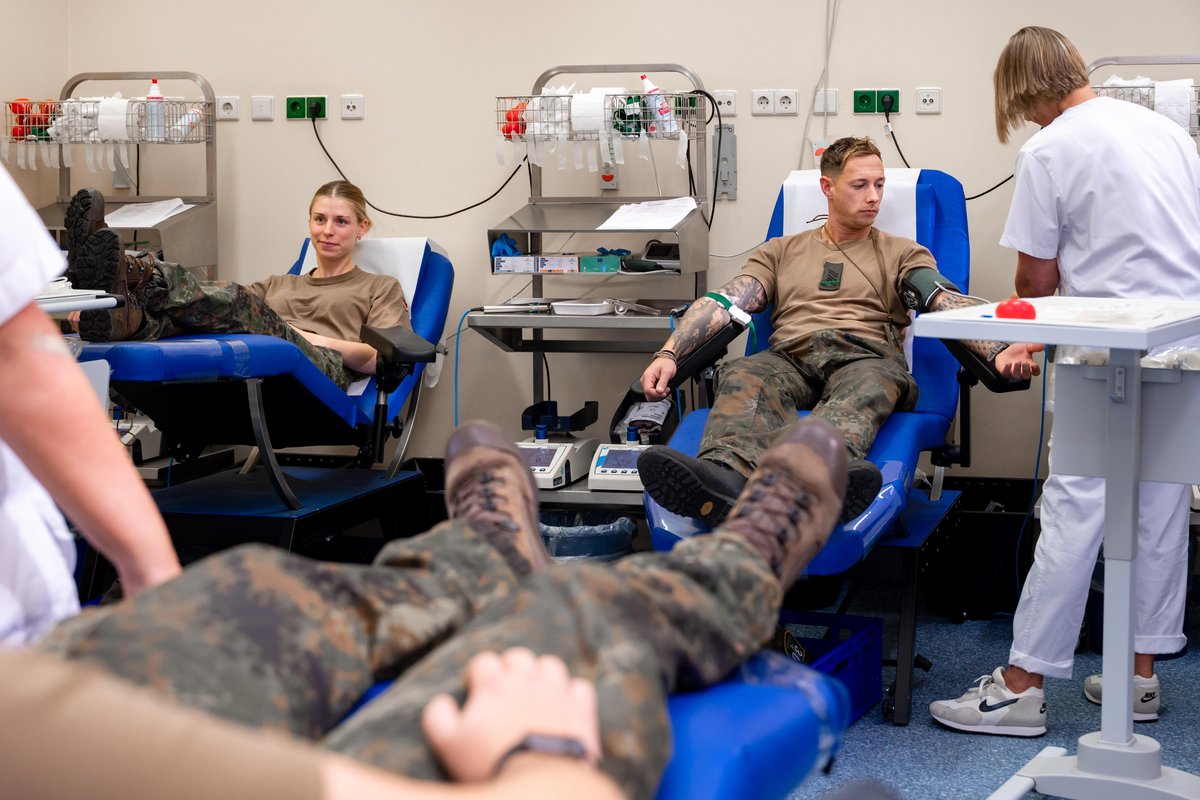 Am Ende Oktober war es wieder soweit: Rund 55 Soldat*innen der Stabsunterstützungskompanie, vom Stab sowie der Logistischen Kompanie – binational, also auch mit niederländischen Soldaten – traten zum Blutspenden am UKM an.
